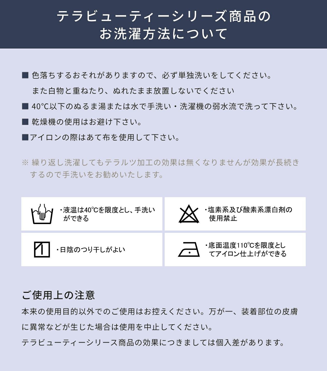 ・繰り返し洗濯をしてもテラヘルツ加工の効果はなくなりません。