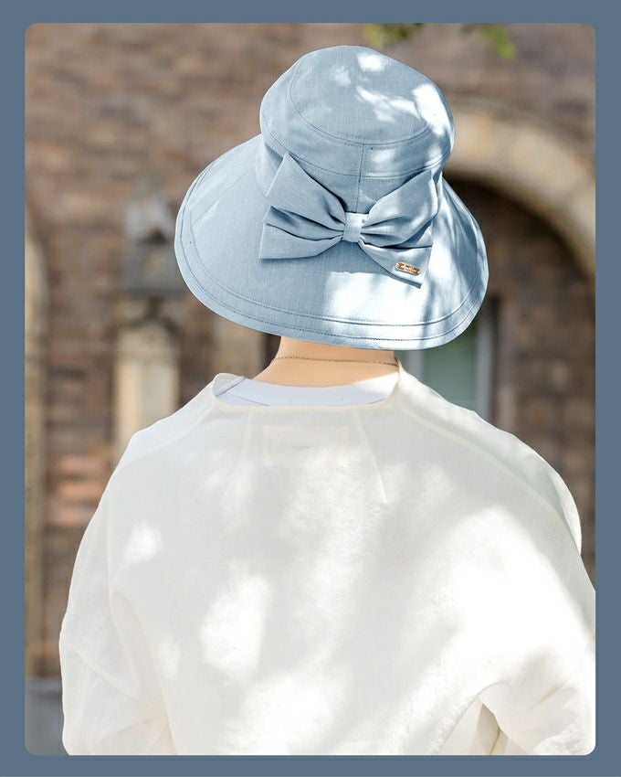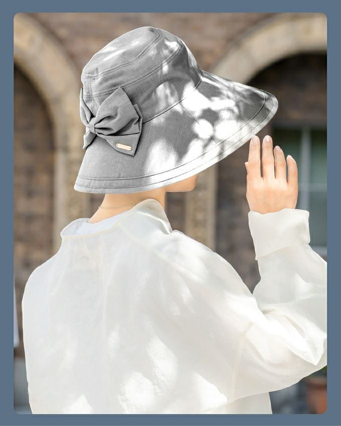 通気性に優れ、涼しげで夏らしいデザインの遮光帽子。