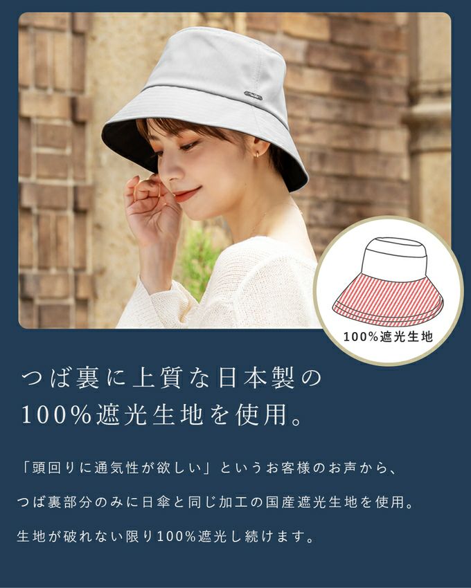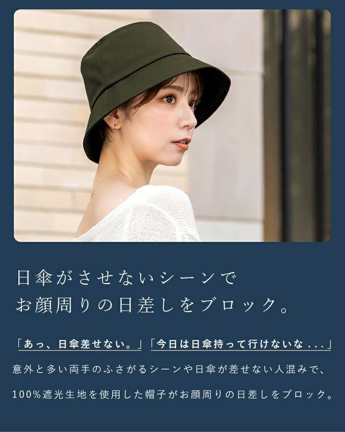 100%遮光 つば裏遮光 T/Cバケットハット