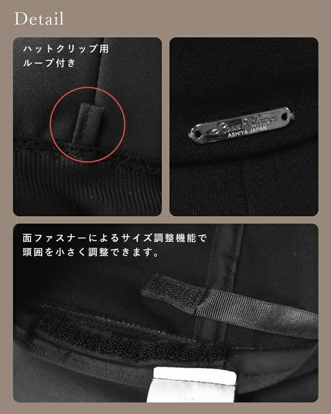 また、つば裏の黒い生地が地面や壁の照り返し光線から肌や目を守ります。