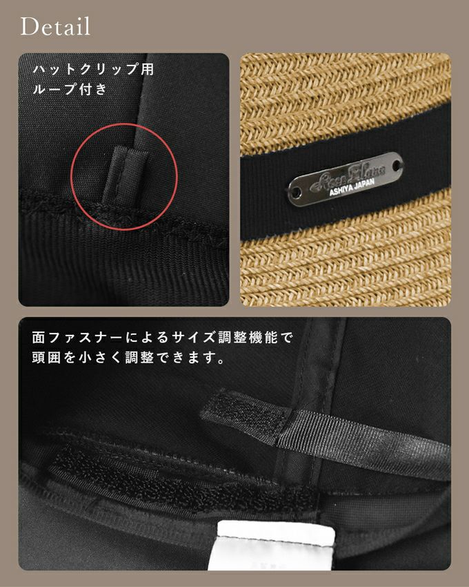 また、つば裏の黒い生地が地面や壁の照り返し光線から肌や目を守ります。