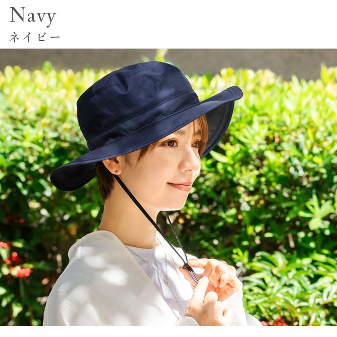 また、つば裏の黒い生地が地面や壁の照り返し光線から肌や目を守ります。