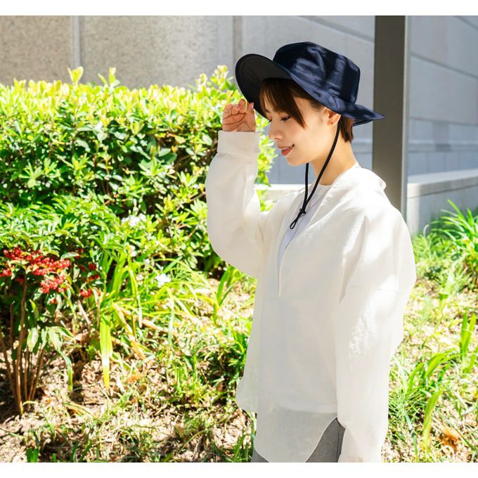 意外と多い両手の塞がるシーンや日傘が差せない人混みで、100%遮光生地を使用した帽子がお顔周りの日差しをブロックします。