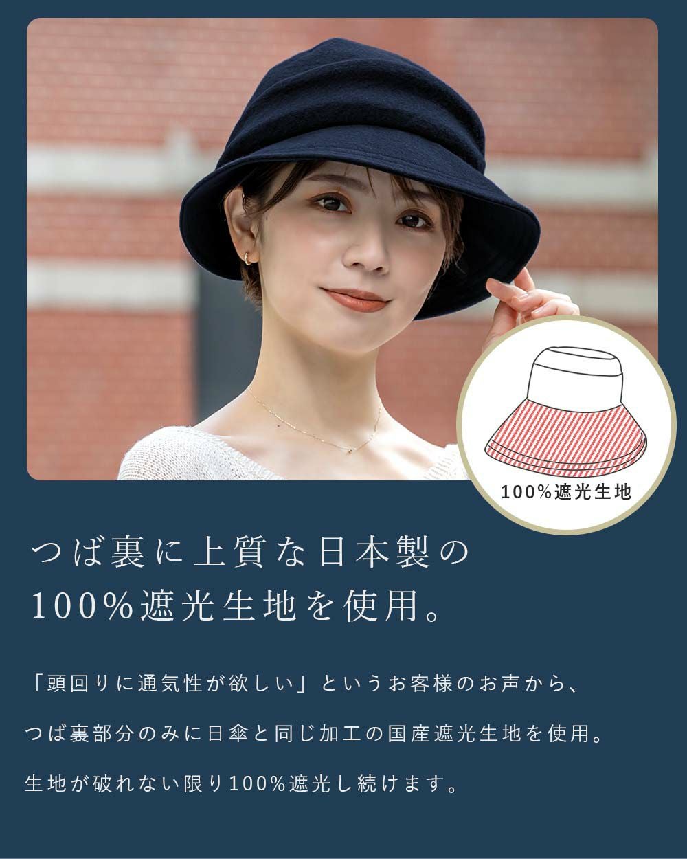 100%遮光 つば裏遮光 ビシュウウールスリットハット