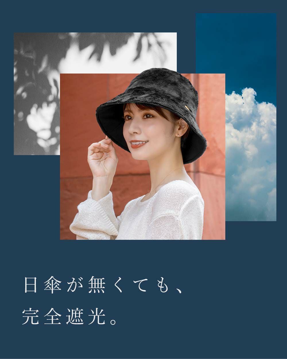 意外と多い両手の塞がるシーンや日傘が差せない人混みで、100%遮光生地を使用した帽子がお顔周りの日差しをブロックします。