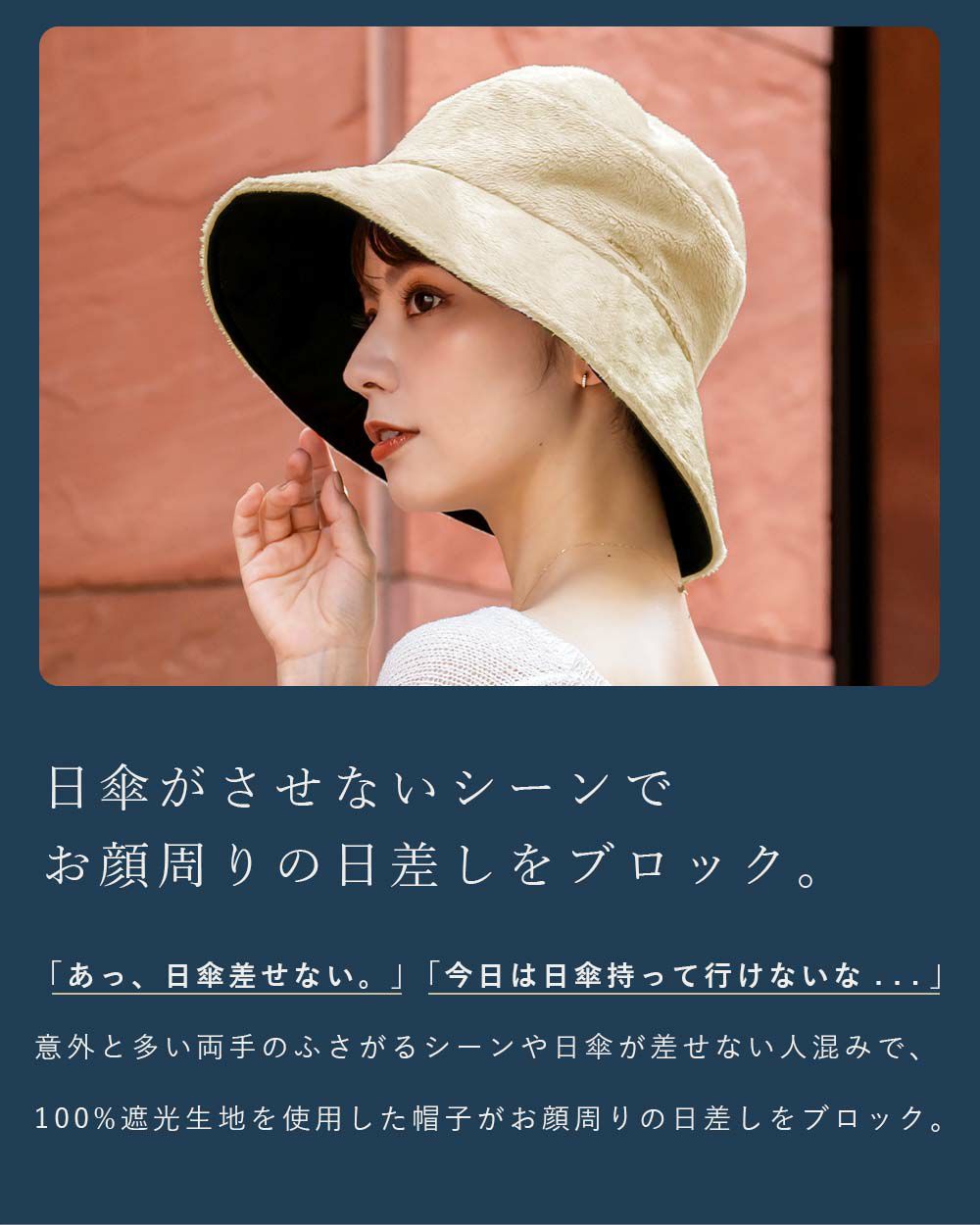 100%遮光 つば裏遮光 マイクロベルボアプレーンハット