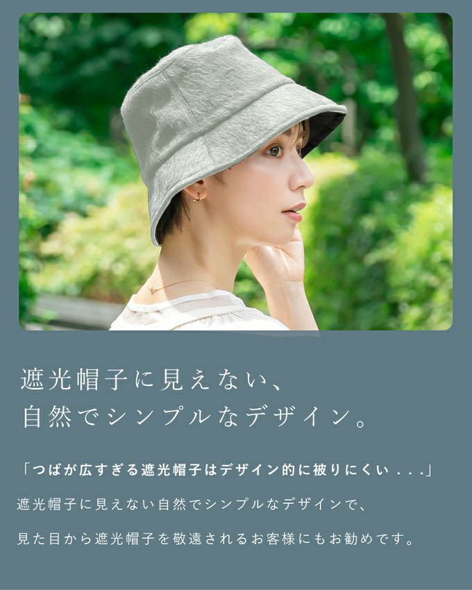 100%遮光 つば裏遮光 フレアスムースバケットハット