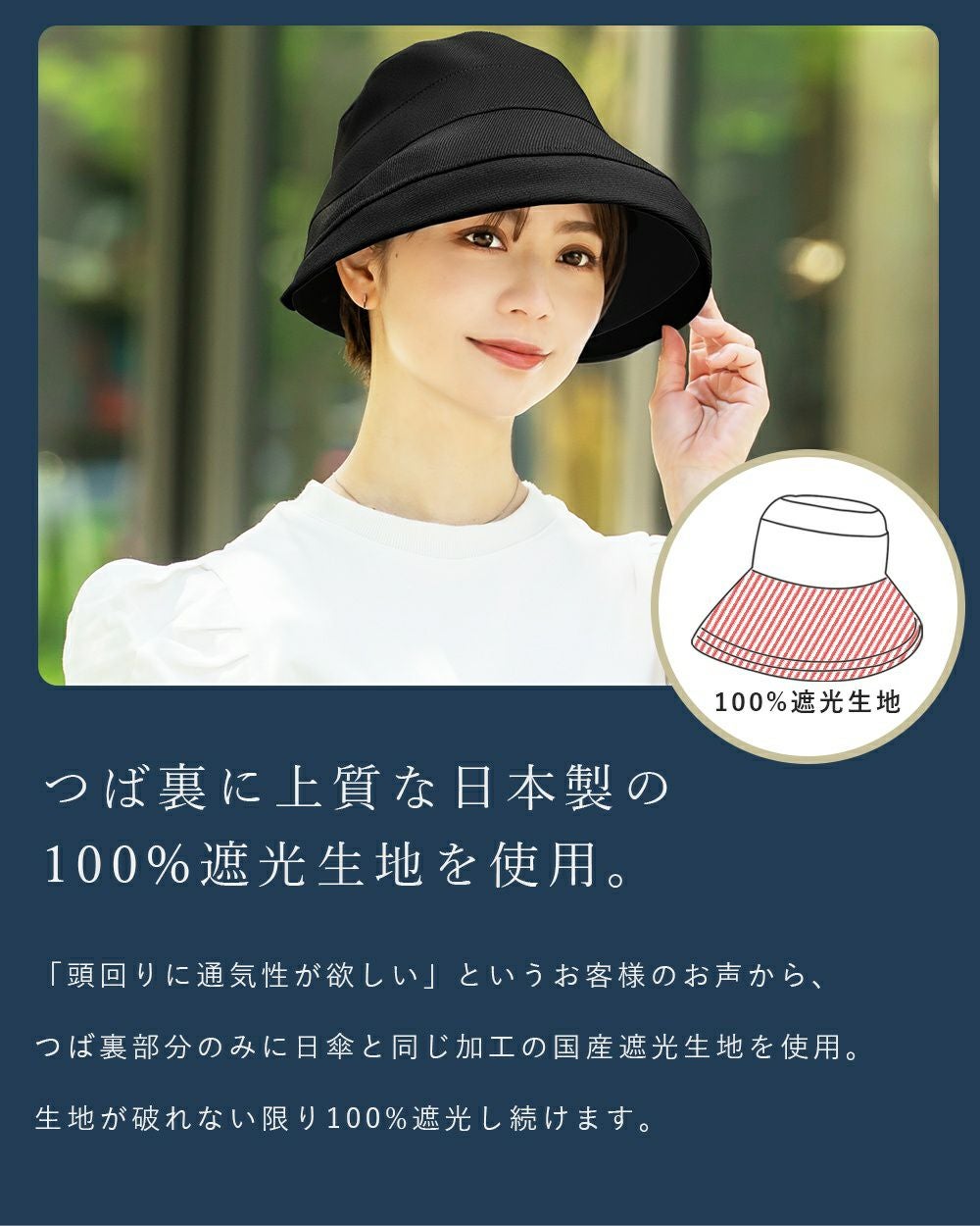 100%遮光 つば裏遮光 ウーリーエッジアップハット
