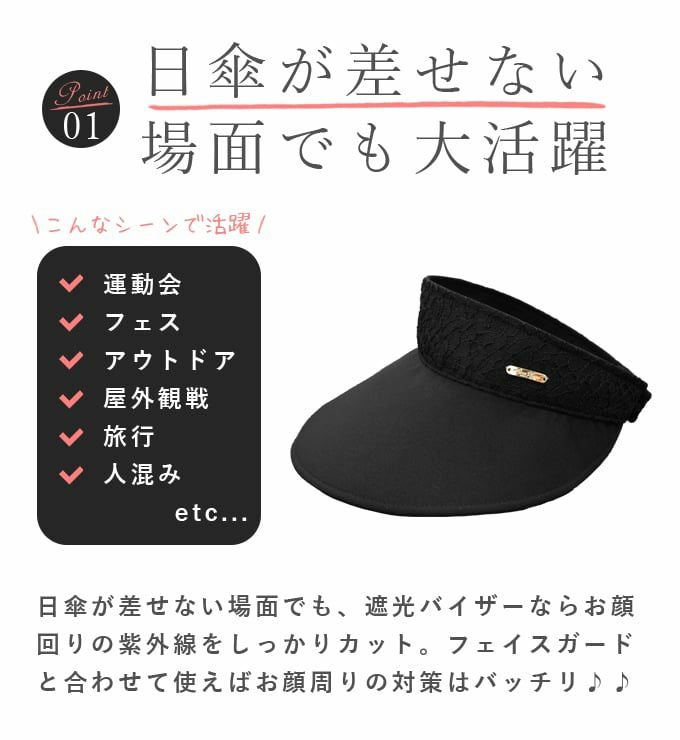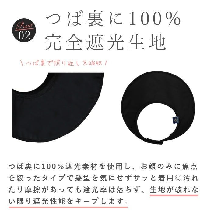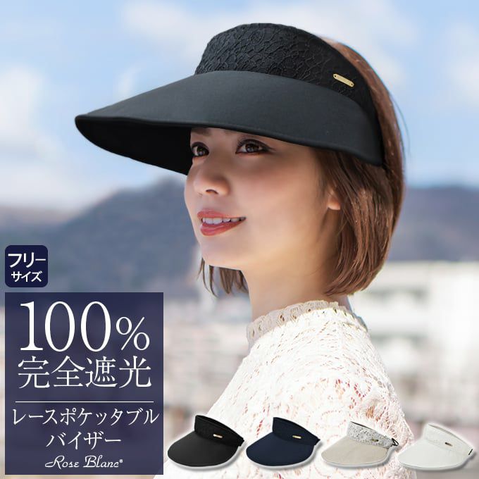 100%遮光 つば裏遮光 レースポケッタブルバイザー