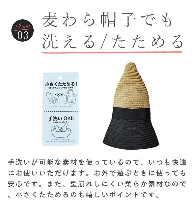 一見すると本物の麦わら素材と見分けがつかない、洗えるブレード . . .