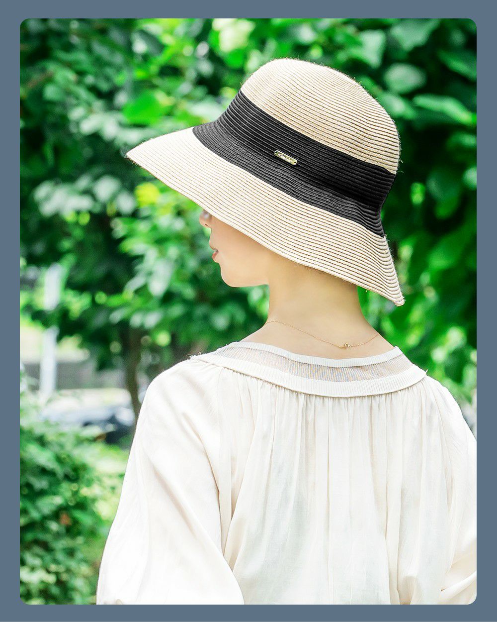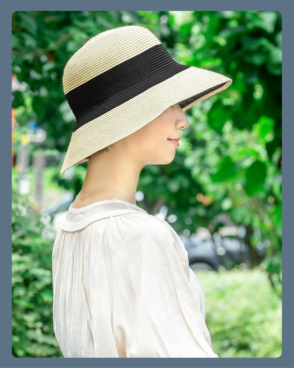 通気性に優れ、涼しげで夏らしいデザインの遮光帽子。