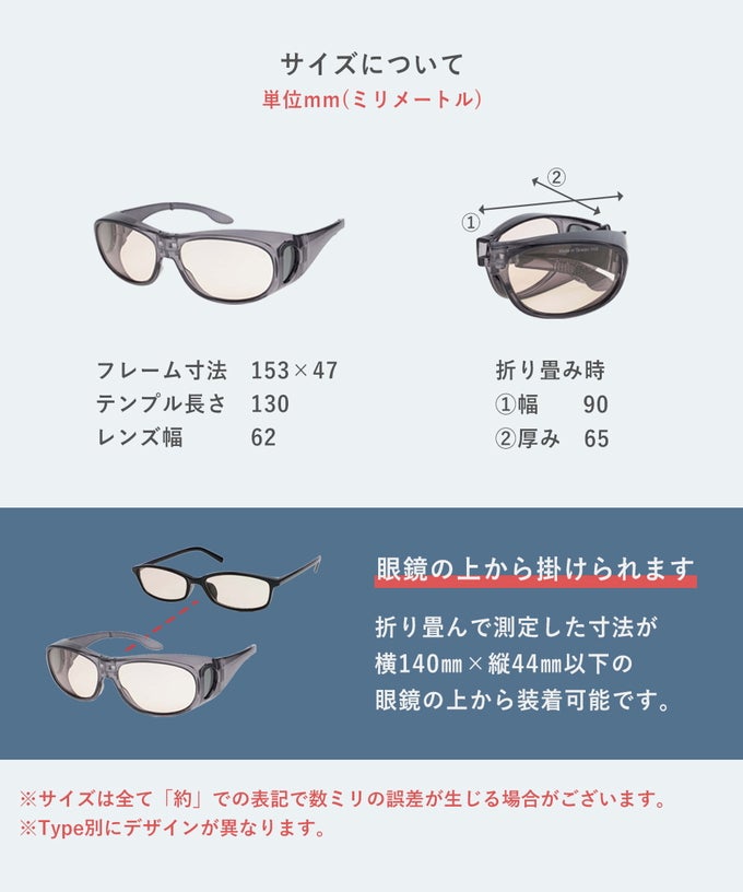 普段お使いの眼鏡の上から、サッとかけるだけで紫外線をカット。