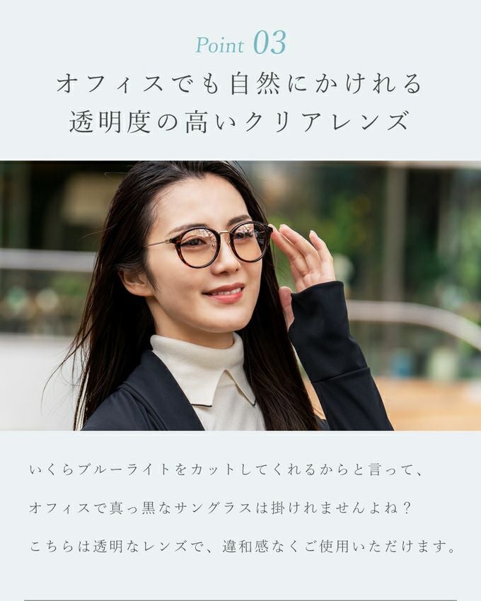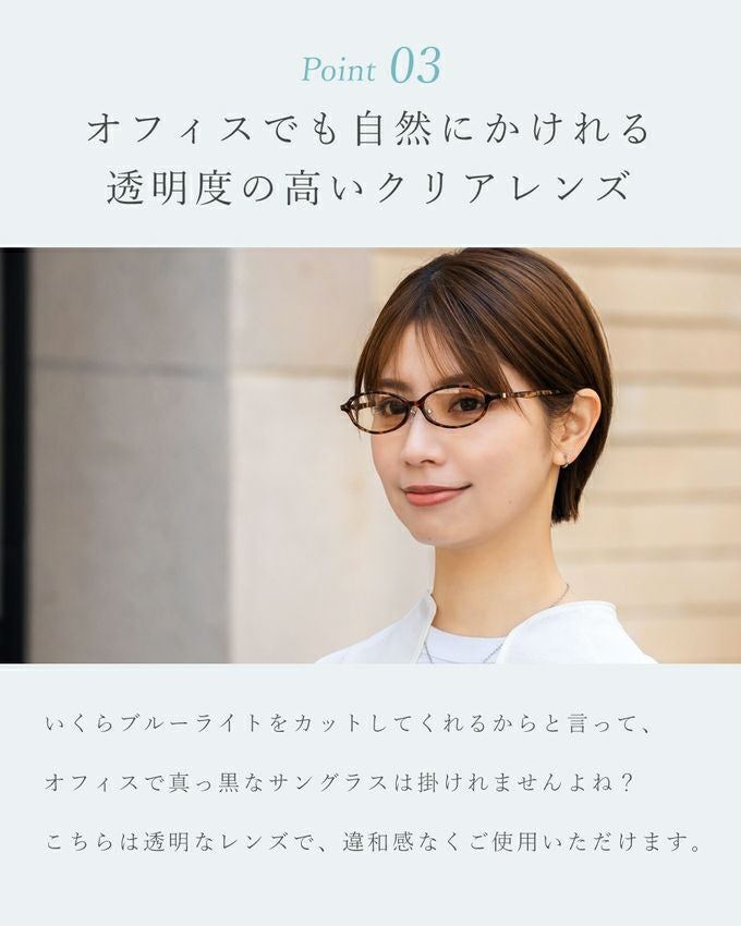 オフィスでも自然にかけれる、透明度の高いクリアレンズ。
