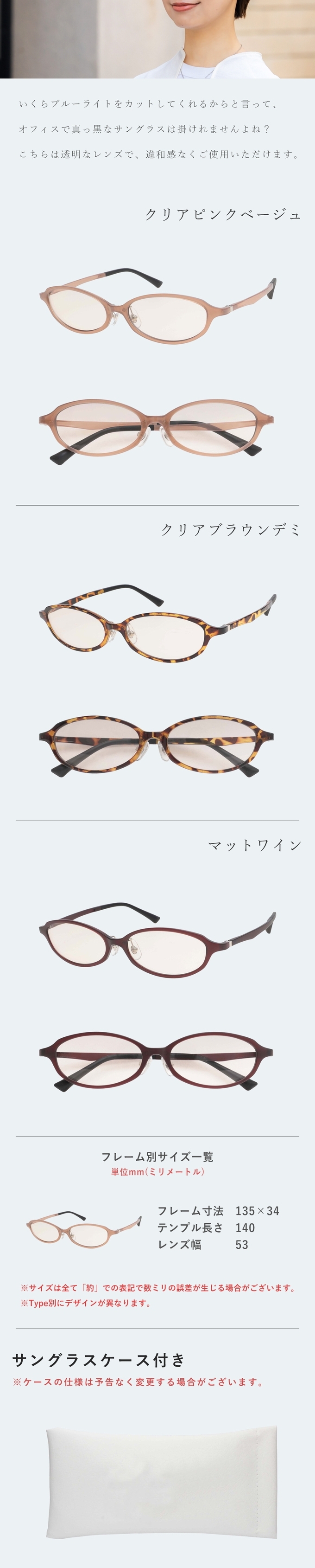 素材 レンズ・フレーム:プラスチック