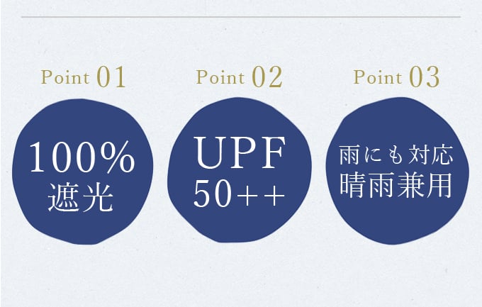 縫製は可能な限りの最善のピッチにより努力をしております。稀に張りの関係上縫製の針孔を気にされる場合がございますが、生地自体の加工が一般の日傘比較の上で高遮光率100%の性質を維持している見地から完全遮光日傘とさせていただいております。その概念で捉えていただきますようお願い致します。