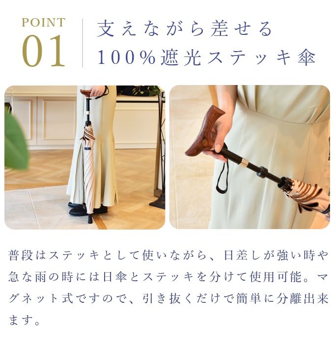 ・ステッキ部分は日傘に収納しマグネットで固定。