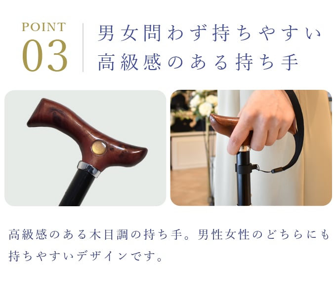 ・ステッキ部分は3段階の長さ調節が可能。