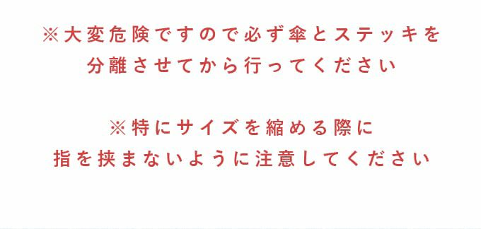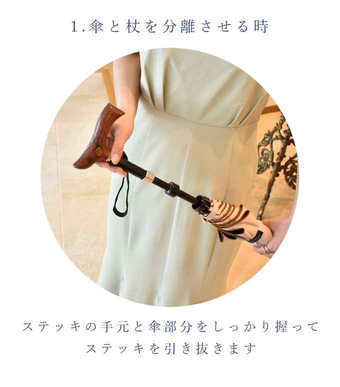 中棒がステッキとして分離する、杖と日傘の2way仕様。