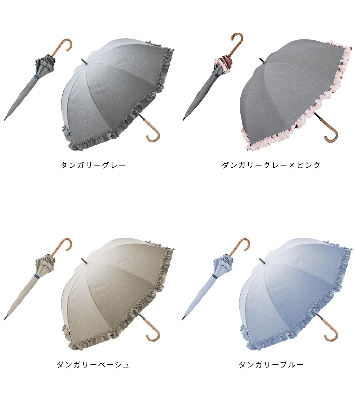 100%遮光日傘 親骨55cm ミドル フリル ダンガリー