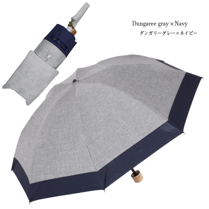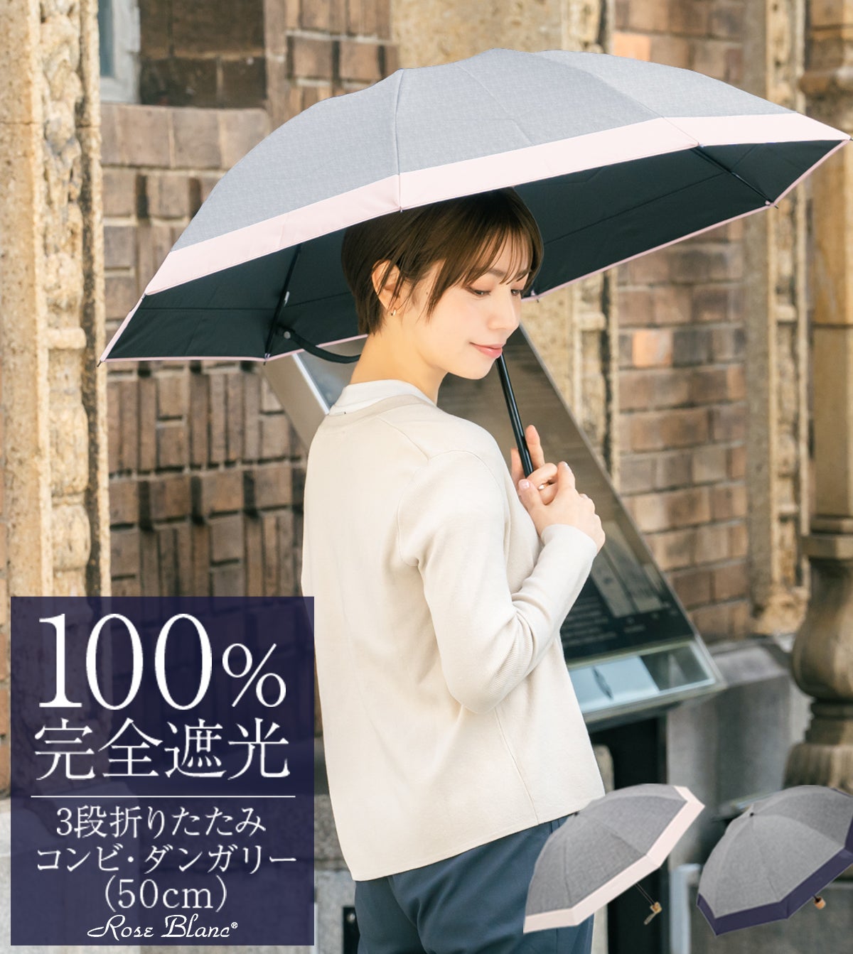100%遮光日傘 親骨50cm 傘袋セット 3段折り コンビ ダンガリー