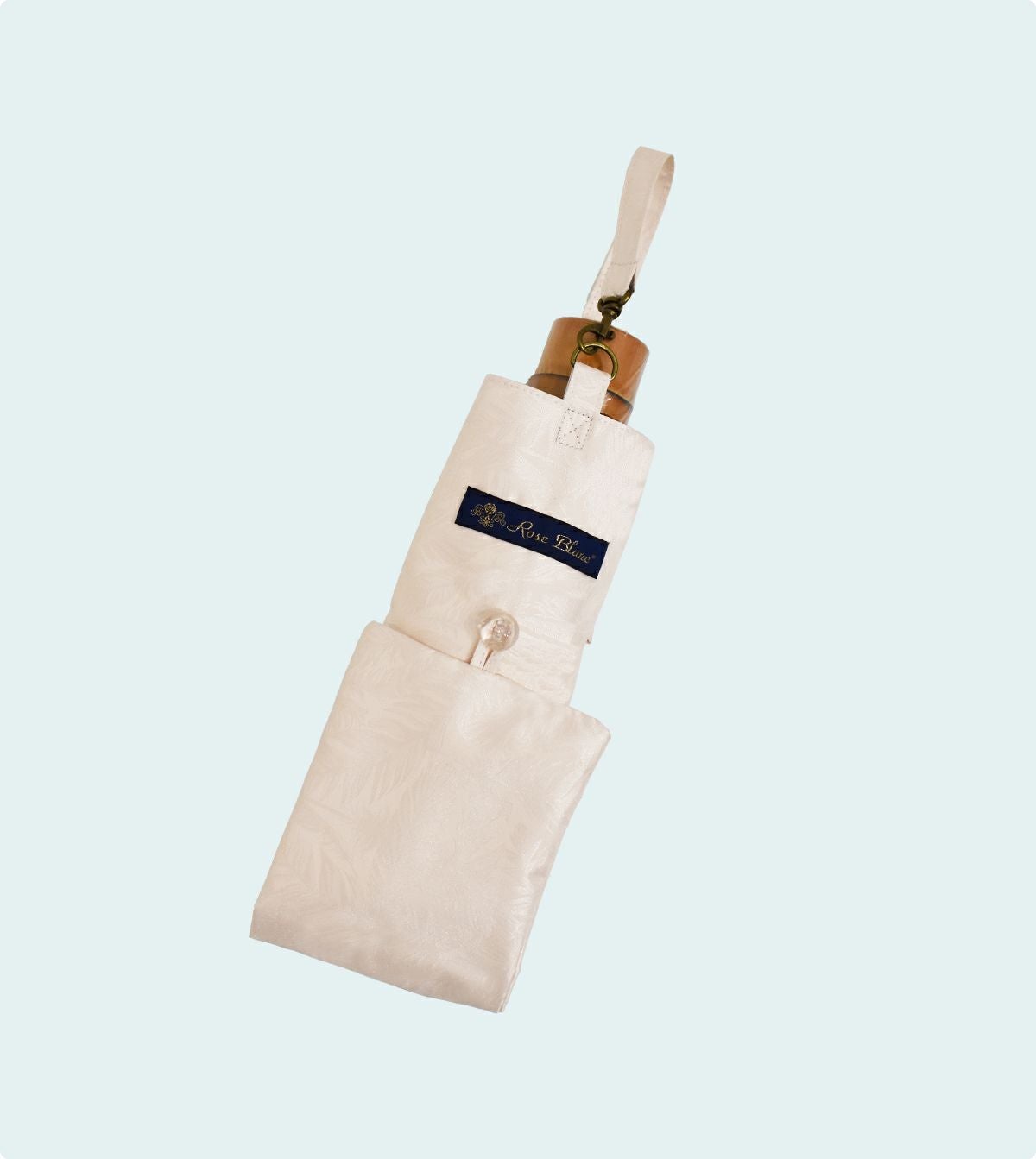 「3段折りたたみ」はロサブランの日傘の中で最もコンパクトなサイズです。折りたたんだ時の全長は24cmで、軽い日傘をお求めの方やバッグに収納されたい方にお勧めのサイズです。サイズ解説ページはこちら