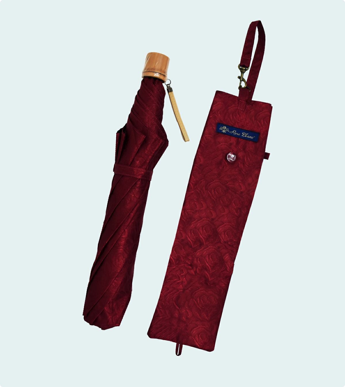 100%遮光日傘 親骨50cm 傘袋セット 3段折り ローズ