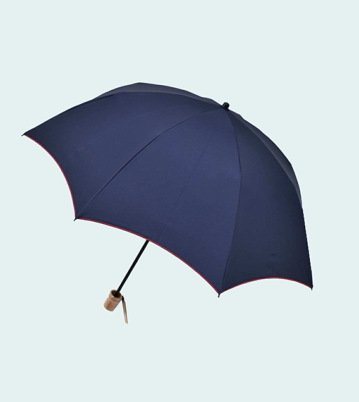 「折り畳み傘」といえば、平べったいシルエットの傘が多いですが、ロサブランの「2段折りショート」は一見すると折り畳み傘に見えない、深張りの丸みを帯びた美しいシルエットで、長傘と見分けがつかないほど自然なシルエットです。 / 00