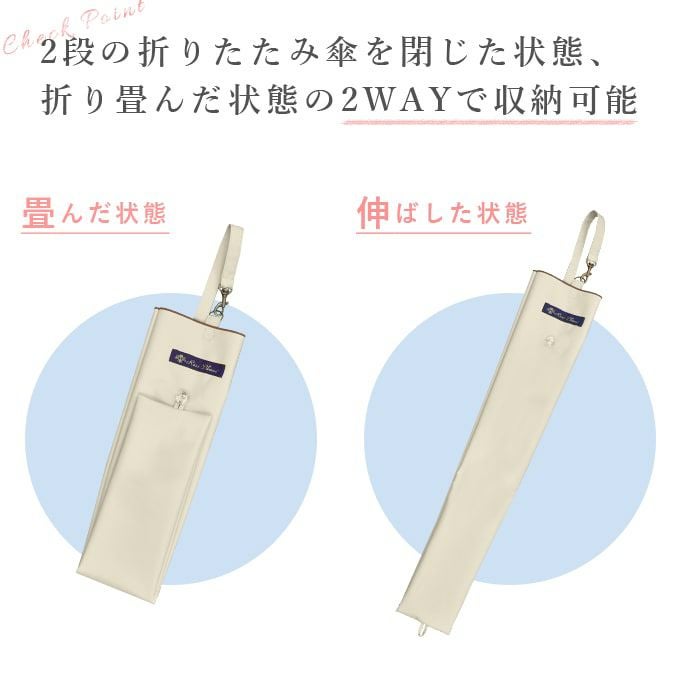ボタンを外せば、折りたたみ傘を折りたたまない状態で収納できる、2wayタイプのとっても便利な傘袋です。