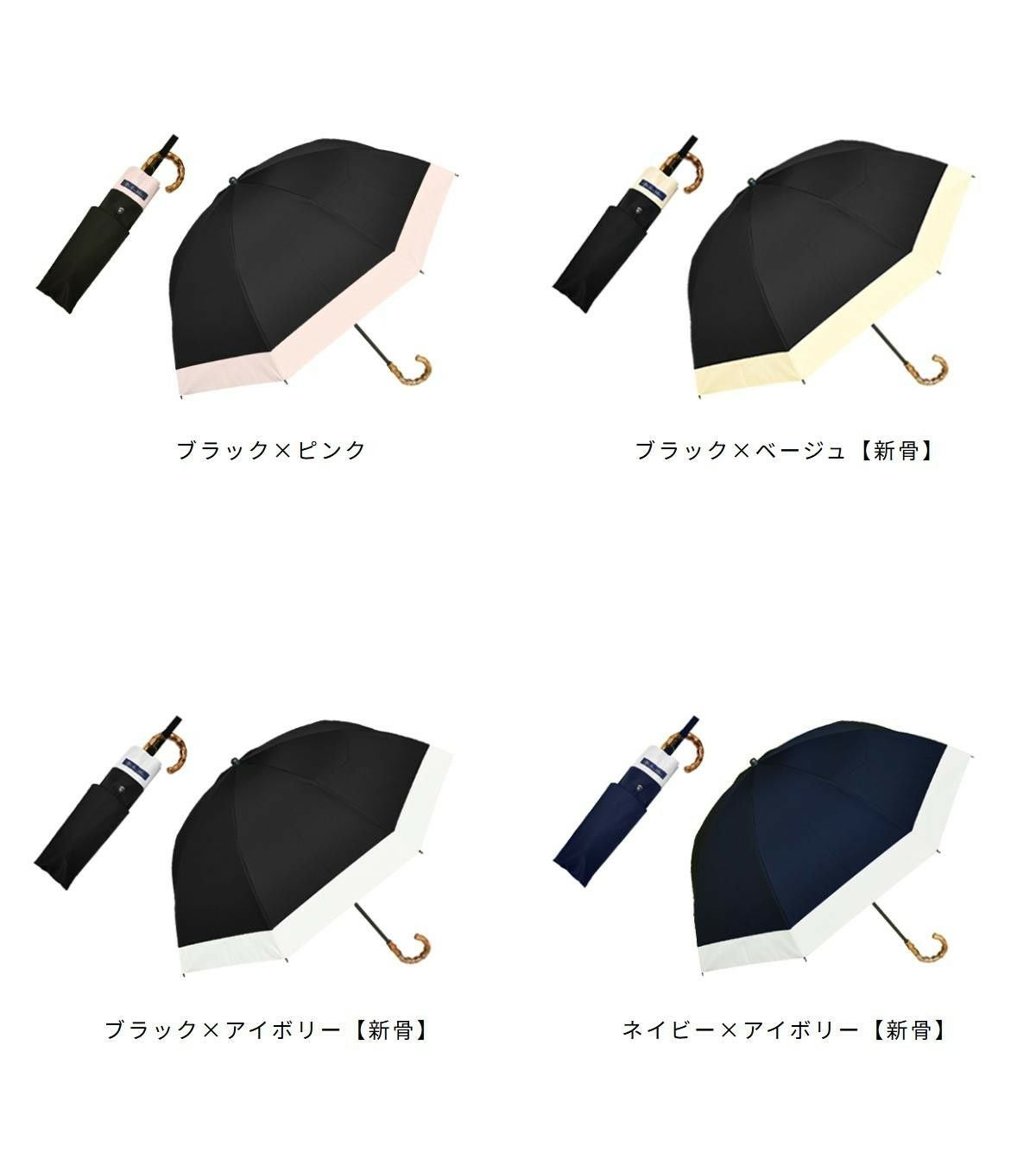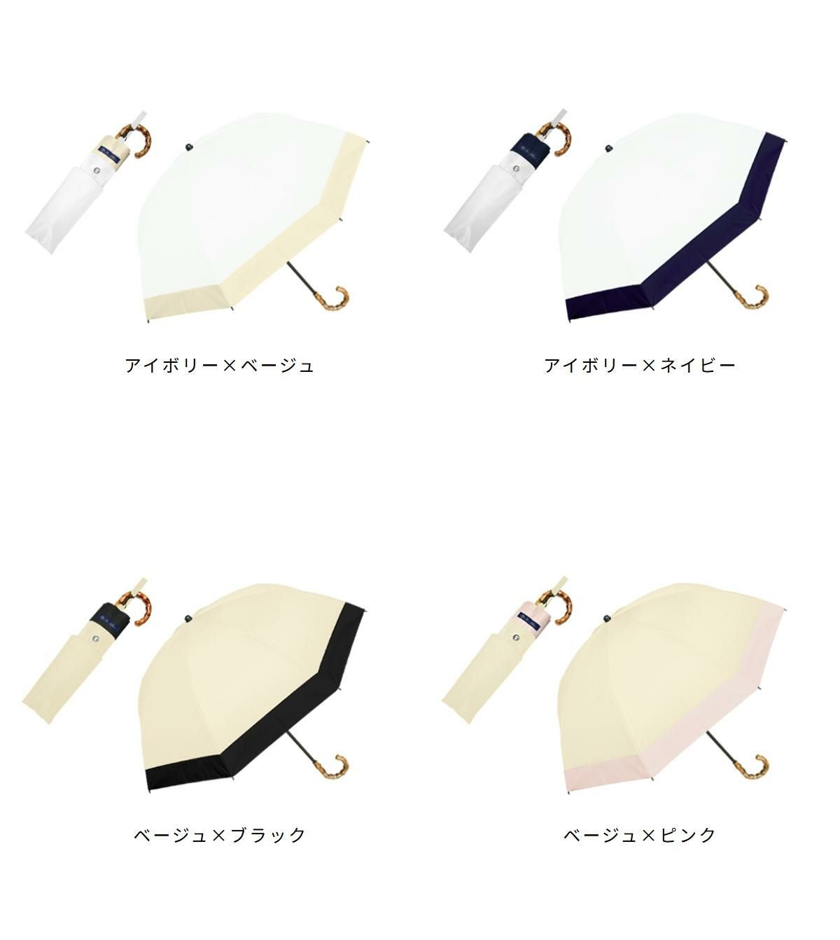 100%遮光日傘 親骨50cm 傘袋セット 2段折り コンビ 曲がり竹手元