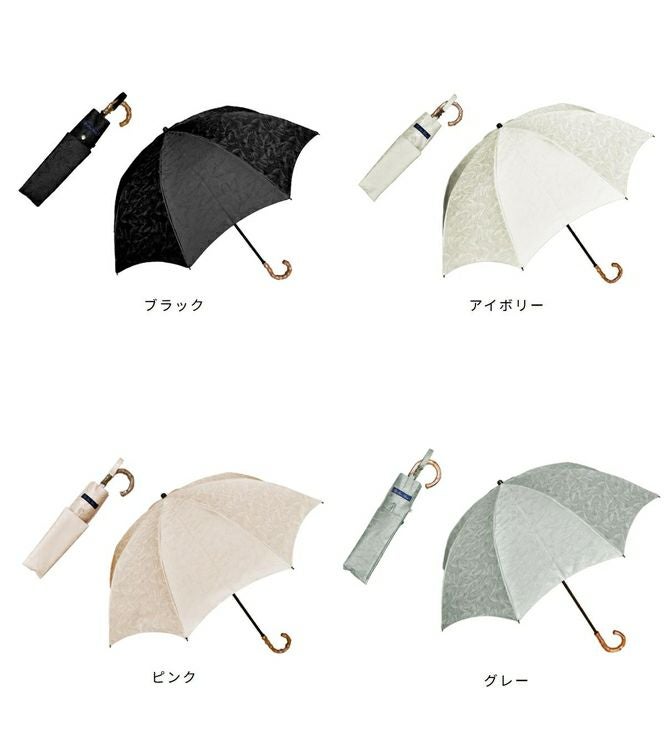 100%遮光日傘 親骨50cm 傘袋セット 2段折り フェザー 曲がり竹手元