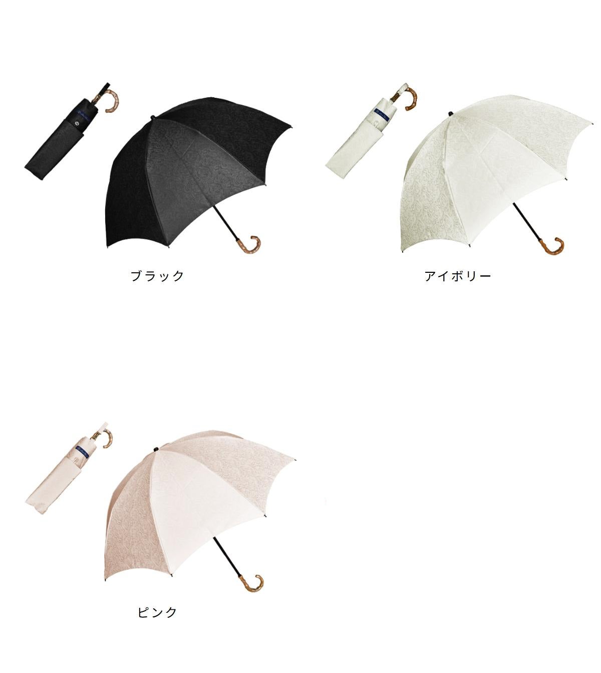 100%遮光日傘 親骨50cm 傘袋セット 2段折り ローズ 曲がり竹手元