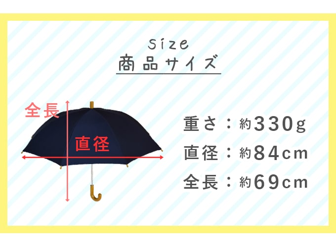 女性の一般的な雨傘のサイズに近く、広い範囲で雨や日光をブロックします。