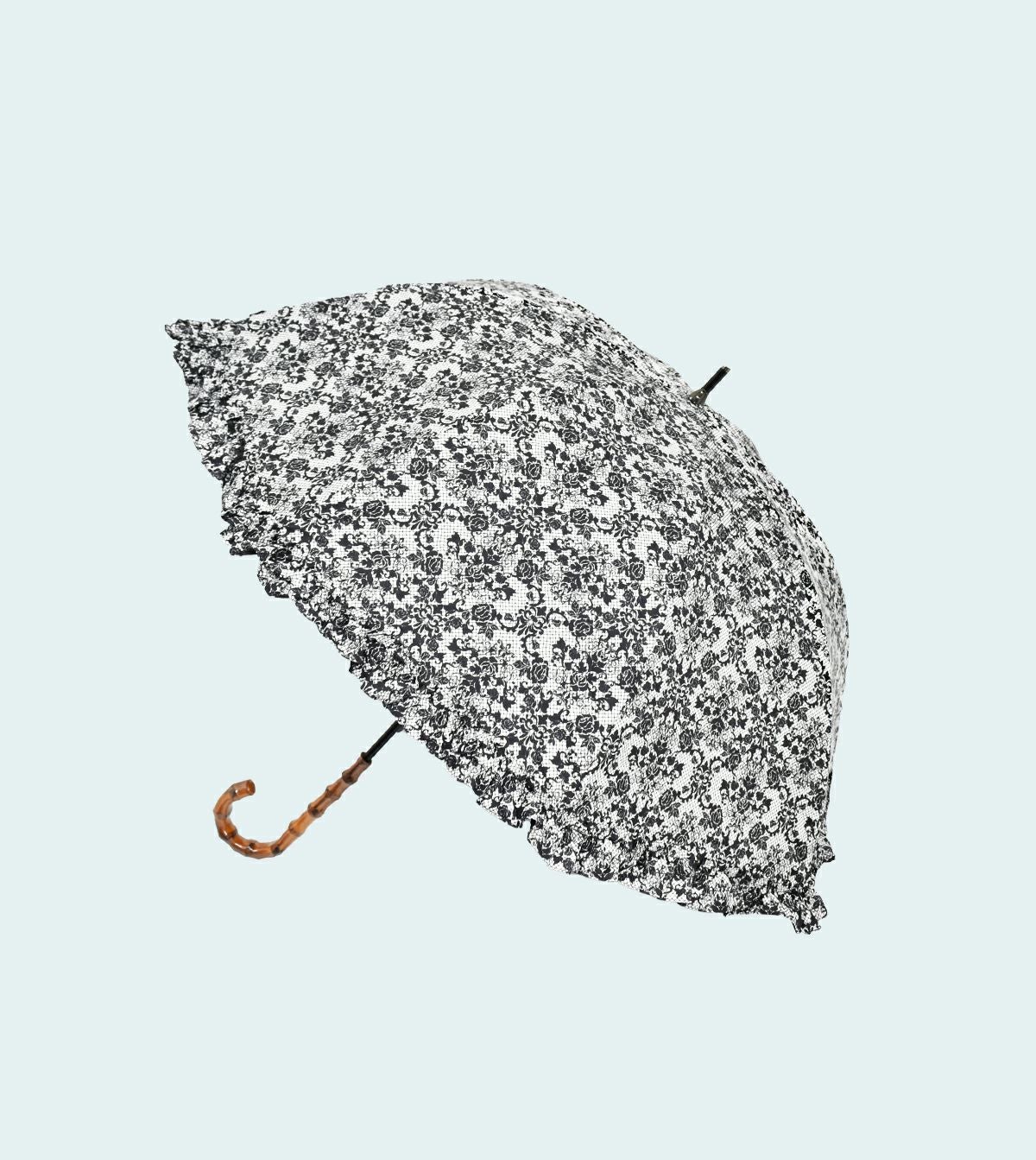100%遮光日傘 親骨55cm ミドル フリル ロゴプリント