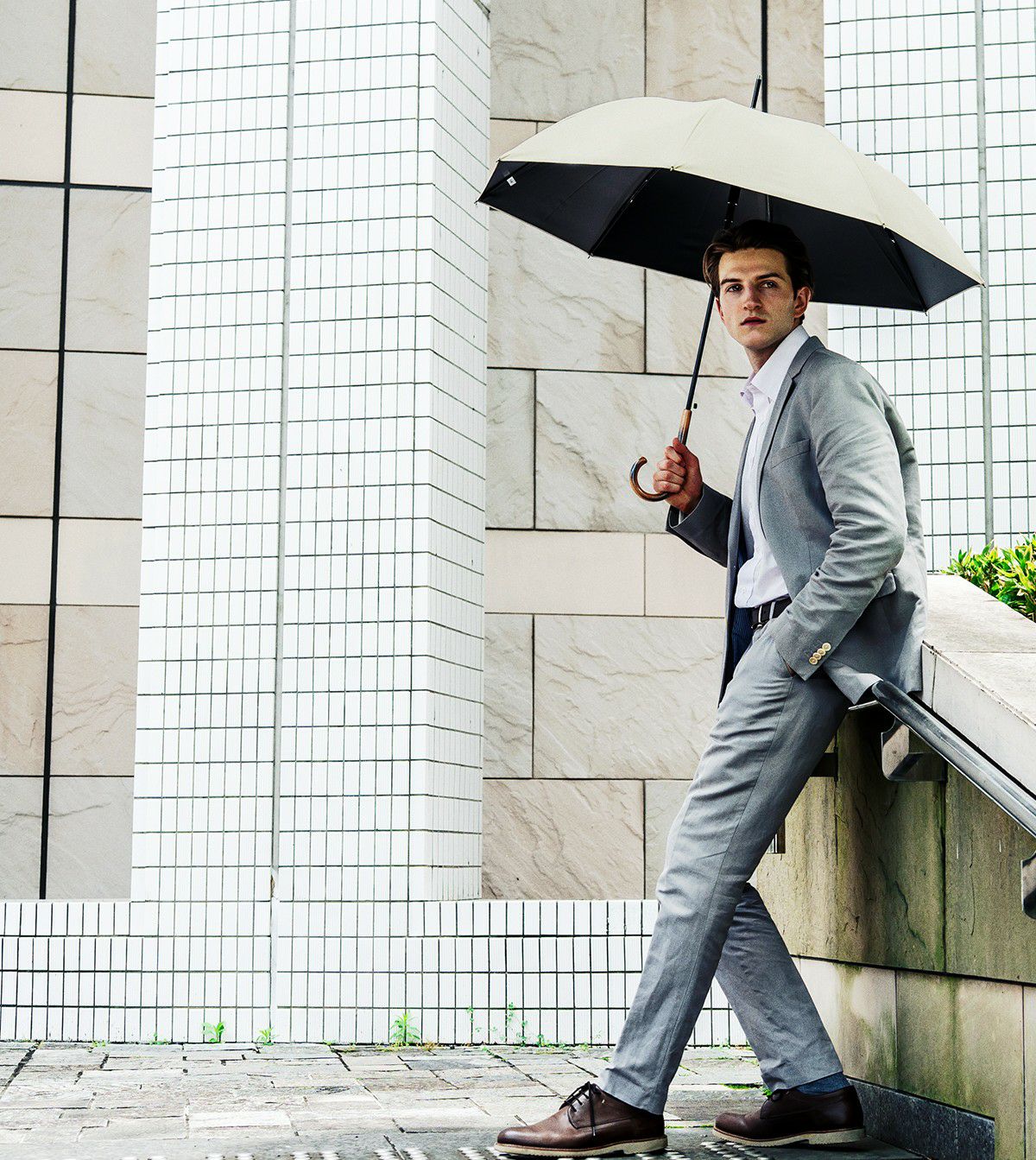 日傘の先端部分にはあえて長めの石突きを採用し、スマートな印象に。身長のある男性にもお持ちいただきやすい石突きのサイズを採用しました。 / 00