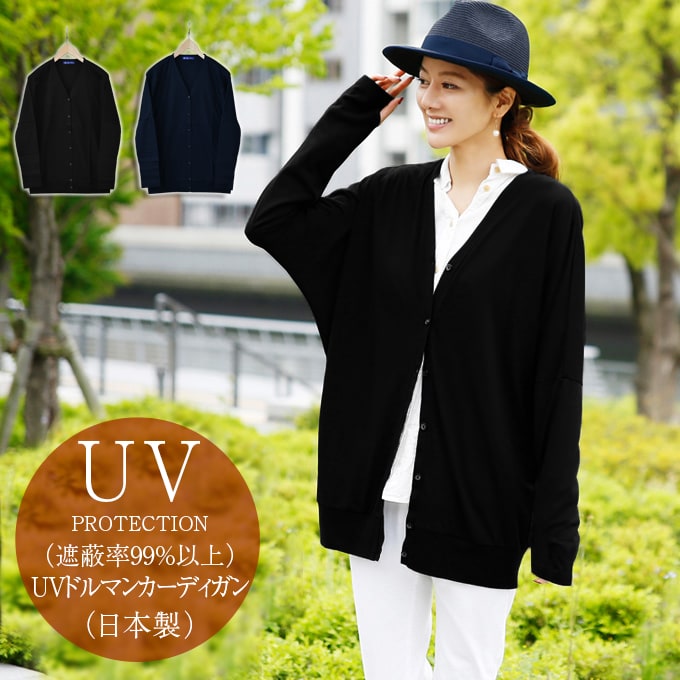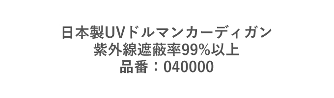 紫外線遮蔽率99%以上の生地を使用したドルマンカーディガンは、サッと羽織るだけで紫外線をカットできます。ハイブランドでも使用される肌触りの良い綿素材で、着用感も心地よいものになっています。