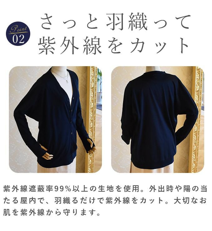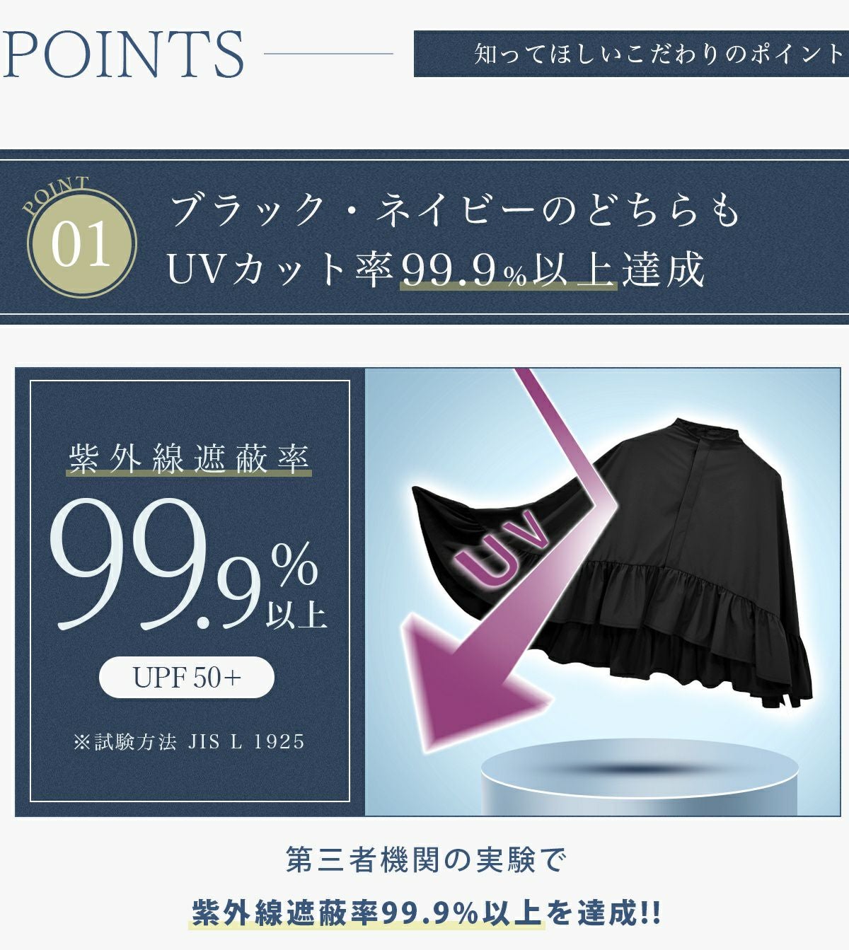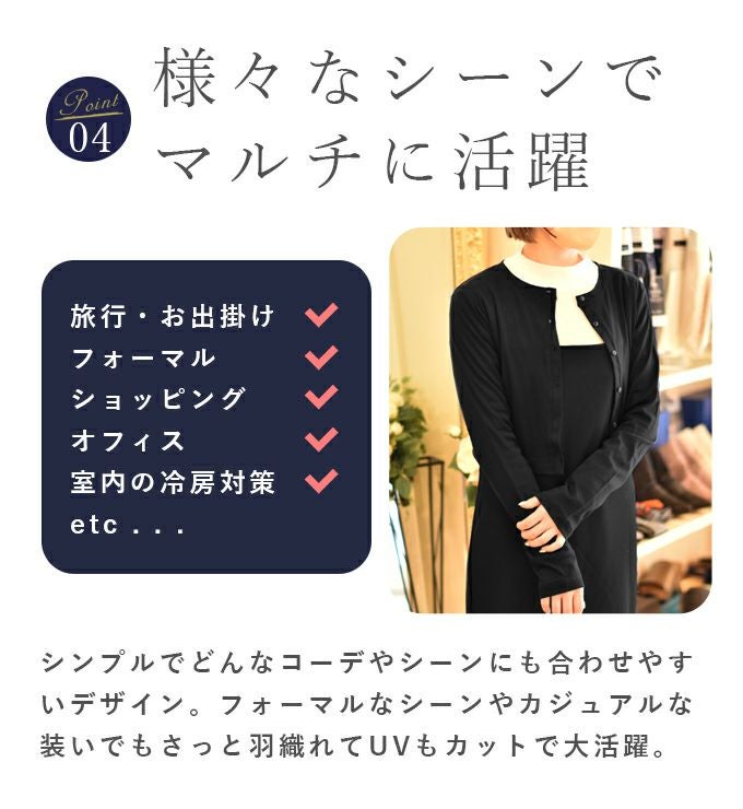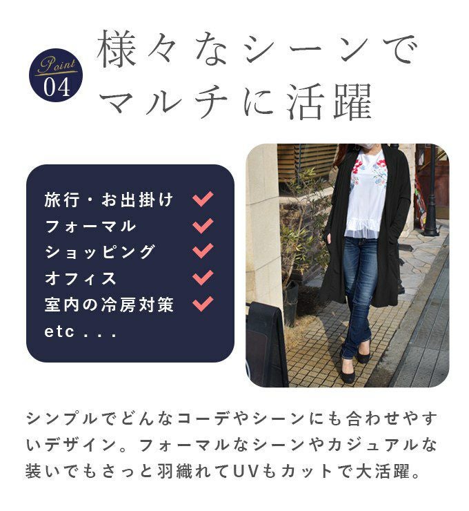 サッと羽織るだけで日差しをブロック。日傘が差せないシーンに。