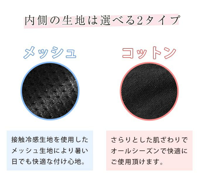涼しさのメッシュタイプ、オールシーズンのコットンタイプ