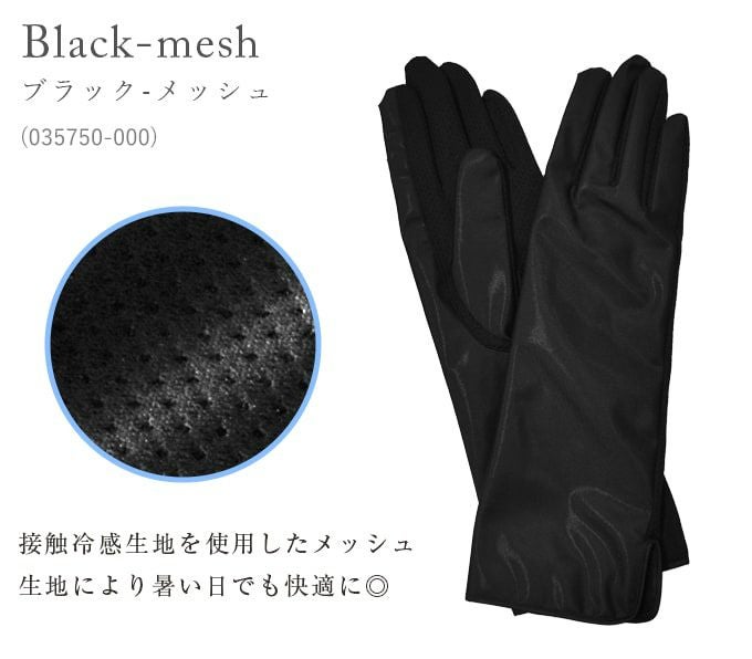 そこで遮光生地は指先から腕の外側だけにとどめ、吸水速乾機能のある涼しげなメッシュ生地を使用。