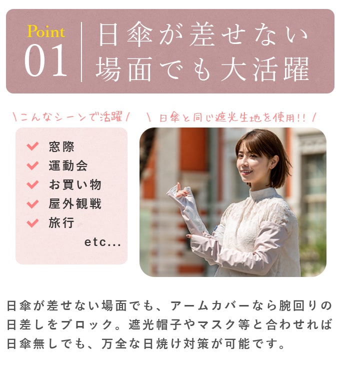 手から二の腕までをしっかりとカバー。半袖時に大活躍。