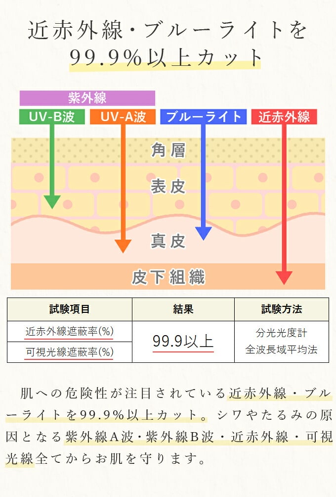 普段着の下に着るだけで、UVを98%以上カットします。