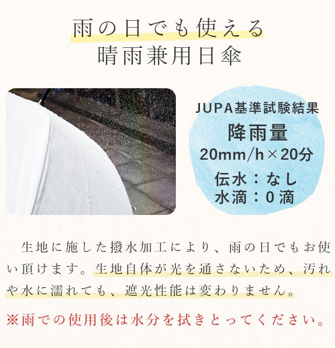女性の一般的な雨傘のサイズに近く、広い範囲で雨や日光をブロックします。