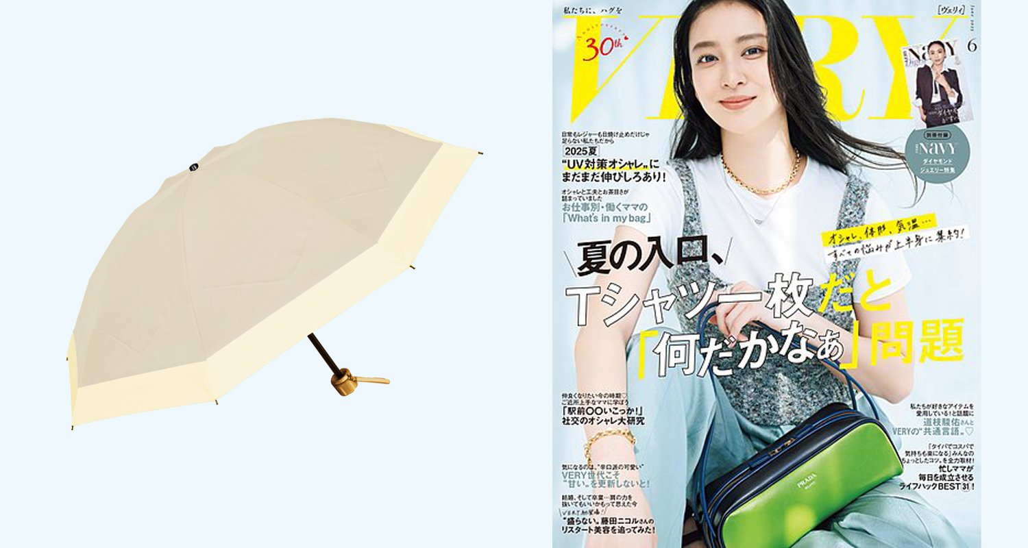 2025.06.04 雑誌「VERY 6月号」"3段折りたたみ日傘(コンビ)"掲載 スタッフコラム コラム WEB担当:sakabe 写真の商品:3段折り コンビ(シャンパンベージュ×ベージュ) 雑誌掲載:3段折りたたみ日傘(コンビ) こんにちは。WEB担当のsakabeです。 コンパクトでハンドバッグの中におさまる 「3段折りたたみ日傘」を雑誌「VERY」の6月号でご紹介いただきました。 折りたたんだ時の全長は24cmで、軽い日傘をお求めの方やバッグに収納されたい方にお勧めのサイズです。 特にこちらの「コンビ」はロサブランの日傘でも大人気の商品ですので、 是非、こちらの商品ページをご覧ください。 商品はこちらから